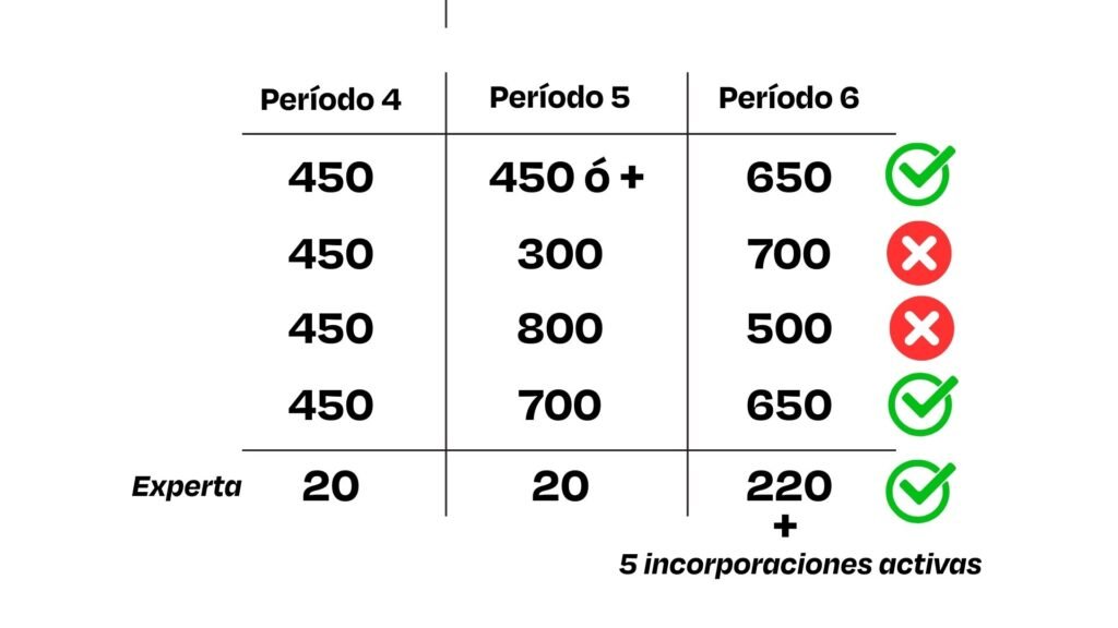 El monto de $280.000 PSD podrá acumularse en un único Período (5 ó 6). En caso de hacerlo en un solo Período, será requisito mantener la actividad en ambos Períodos.
