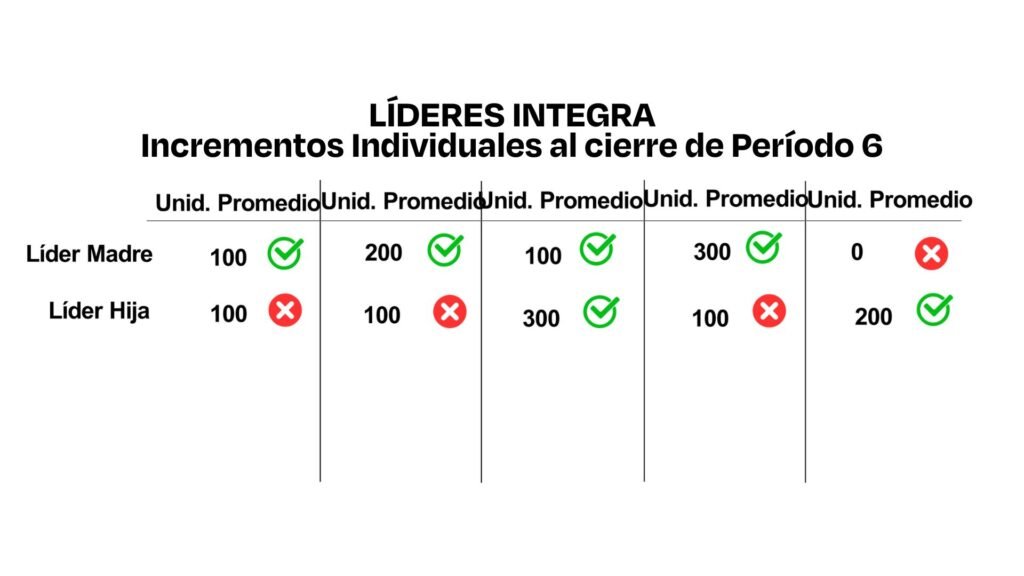 ** En Período 6 no creció las 200 unidades necesarias con respecto al Período 4 para lograr el desafío. Debería haber hecho 650 unidades o más.