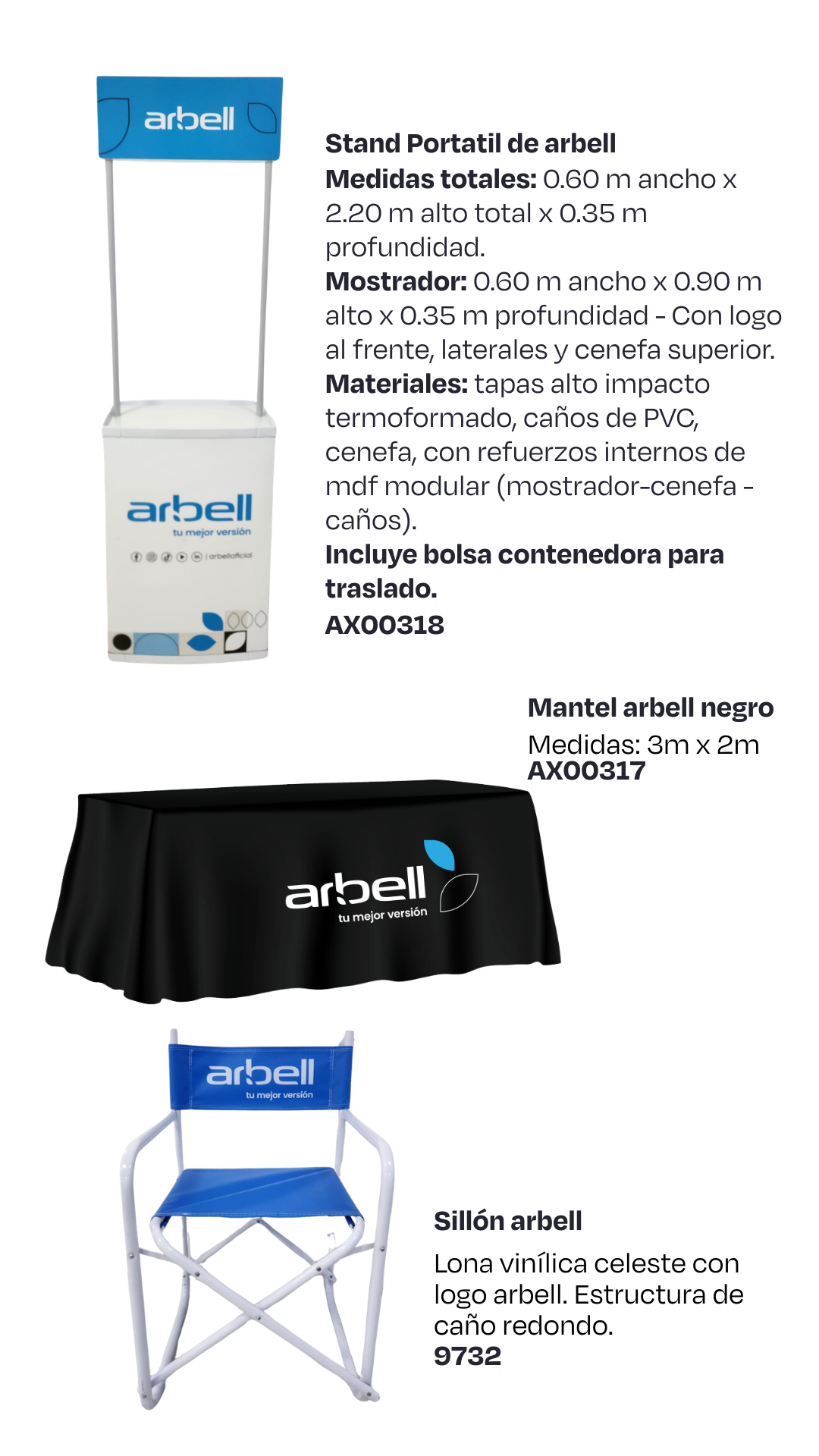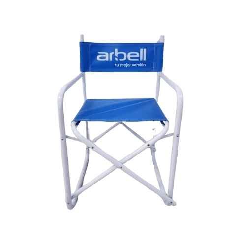 Lona vinílica celeste con logo arbell. Estructura de caño redondo.