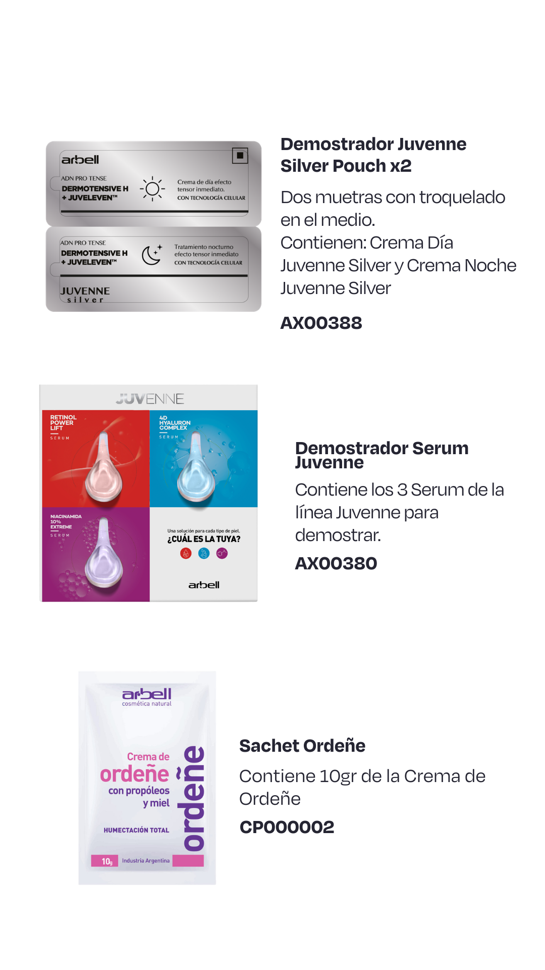 Contiene los 3 Serum de la línea Juvenne para demostrar.